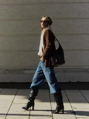 Издание советует сочетать плиссированные сапоги с платьями миди, шерстяными свитерами или прямыми пальто. В то же время стоит избегать длинных брюк, закрывающих складки, ведь именно они являются главной "изюминкой" обуви.