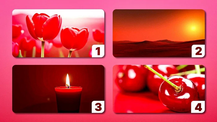 Посмотрите на четыре изображения и выберите, какой оттенок красного цвета привлек ваше внимания. Читайте ниже, о каких чертах вашей личности может рассказать выбор.