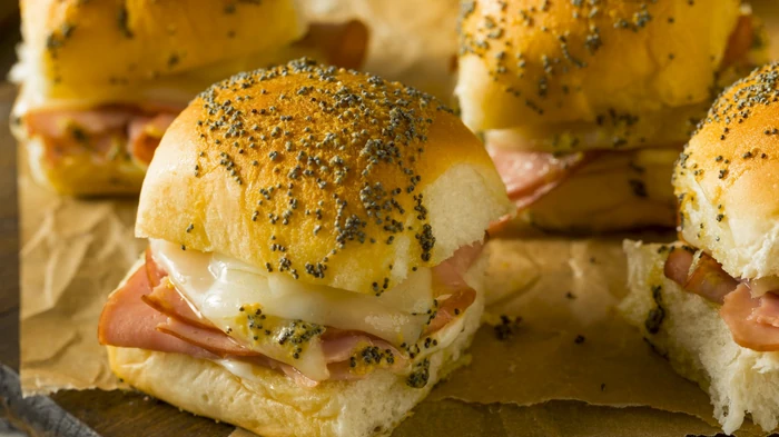 Горячие бутерброды с начинкой из ветчины и сыра, пропитанные луковым маково-масляным соусом, запеченные до тех пор, пока сыр не расплавится в американской кухне называются снайперами. Отличная еда для вечеринок, которую можно приготовить из остатков праздничного стола.