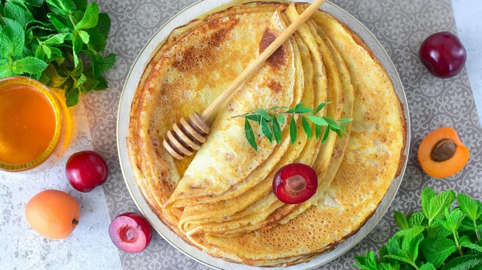 Перед приготовлением усвойте важный нюанс: чтобы блины получились удачными, основные ингредиенты должны быть комнатной температуры. Тогда они лучше всего соединятся в тесте. Поэтому молоко и яйца следует заранее достать из холодильника. Также для рецепта лучше использовать специальную блинную сковороду с толстым дном.