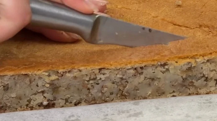 - Выпекаем при 180°C около 1 часа, пока пирог не станет золотистым и аппетитным.