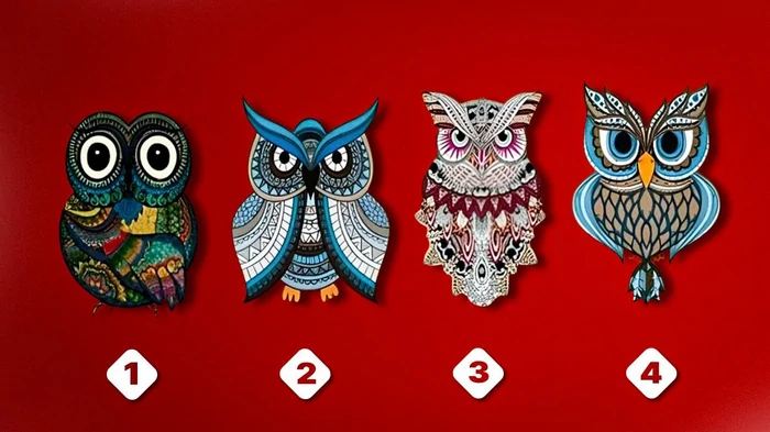 Посмотрите на изображение с четырьмя совами и подумайте, какая из них лучше всего отражает ваши личные вкусы. Расслабьтесь и внимательно изучите картинку. В этом тесте указать можно лишь на одну птицу.