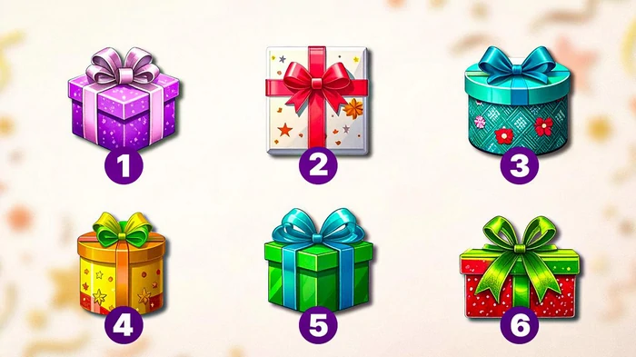 Чтоб пройти этот тест на личность, посмотрите на подарочные коробки на изображении. Они символизируют те скрытые ресурсы, которые находятся внутри вас и только ждут своего часа. Выберите ту коробку, которая привлекла ваше внимание настолько, что захотелось ее открыть.