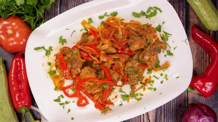 Куриная печень с овощами получается нежная и мягкая