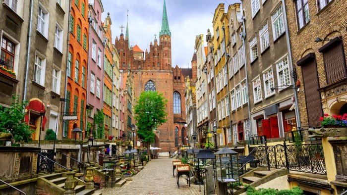 Этот яркий портовый город недалеко от Балтийского побережья будто сошел с обложки детской книги сказок: он красочный, с восьмиугольными башнями, остроконечными крышами и расписными фасадами. И хотя город был практически полностью отстроен после разрушений временм Второй мировой войны, он все равно источает средневековое очарование.
