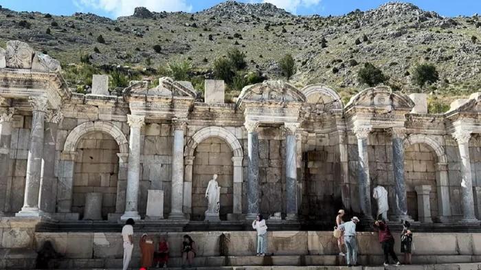 Впечатляющие общественные здания возникли по всему Сагалассосу, включая нимфей Антонина Пия – великолепный декоративный фонтан с замысловатыми арками и нишами для статуй императоров и богов. Фонтан был отреставрирован, и сегодня захватывает дух, когда можно увидеть это чудо римской инженерии в действии: потоки воды низвергаются в большой бирюзовый бассейн.