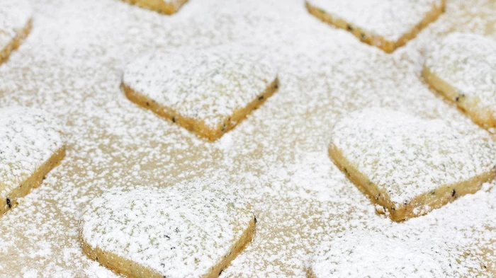 - Выпекайте в заранее разогретой духовке до 180 градусов 8-10 минут. Выньте из духовки, дайте немного остыть, выложите на решетку и посыпьте сахарной пудрой.