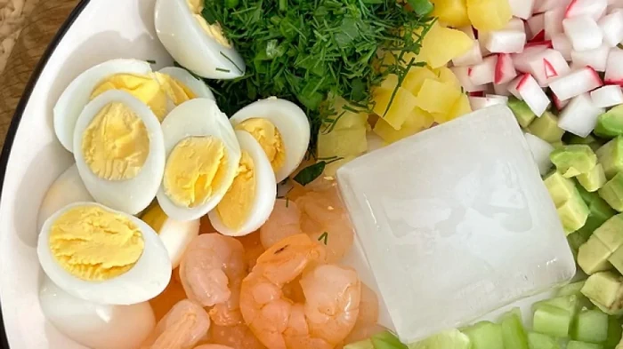 Лето – сезон окрошки. Вариаций этого традиционного холодного супа с добавлением свежих овощей, кваса, зелени и яиц существует огромное количество. Однако в последнее время настоящим хитом стало видео с приготовлением окрошки с креветками и проссеко. Оно завирусилось в сети.