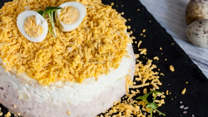 Салат «Мимоза» – классика праздничного стола. Классическая версия этого салата – с майонезом. Впрочем, если хочется сделать немного "легкую" версию салата, то можно изменить заправку. ТСН.ua подготовил рецепт "Мимозы" с заправкой из крем-сыра от кулинарной блоггерки @recipes_ira.