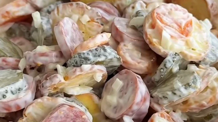 Салат "Копейка" — простое в приготовлении бюджетное блюдо из доступных ингредиентов. Прекрасно подходит, как для ежедневного, так и праздничного меню. Об этом сообщает РБК-Украина со ссылкой на Instagram-страницу фудблогера Алены Карпюк.