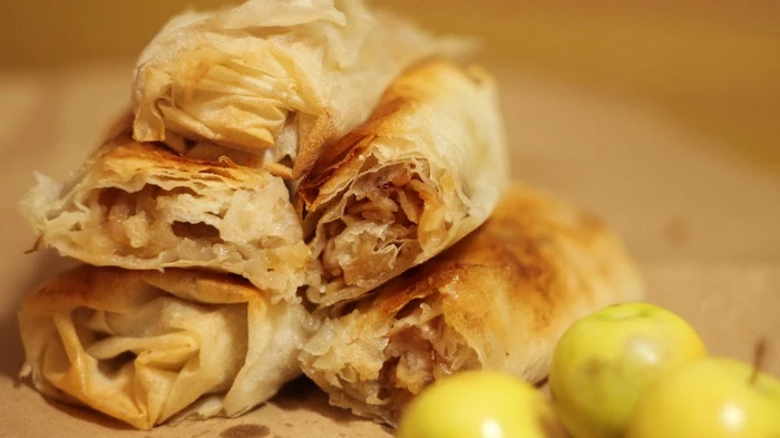 Если не хотите долго возиться с тестом, приготовьте рулетики с яблоками из обычного лаваша. Это ароматная, сладкая выпечка с хрустящей корочкой и сочной начинкой из яблок с корицей.