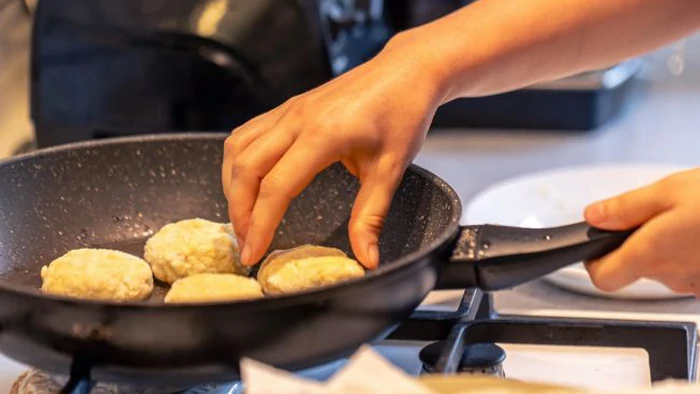 - Обжарить на среднем огне с обеих сторон до золотистой корочки.
