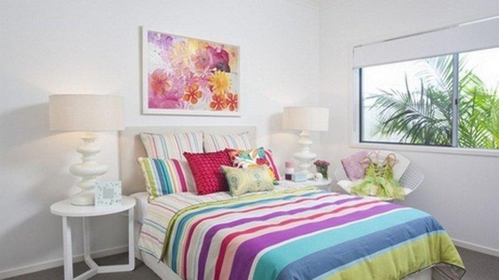 Яркий цветочный принт на белом фоне просто брызжет теплой энергией лета, наполняя комнату цветом.