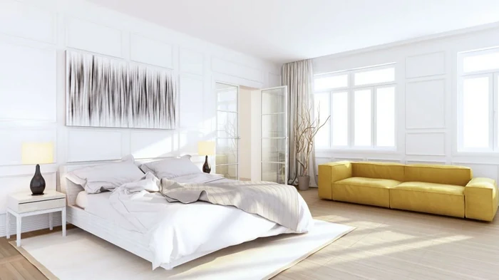 - Крупные предметы, такие как диван или стол, вместо множества мелких создают ощущение простора.