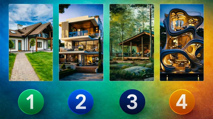Провести самоанализ очень просто — рассмотрите картинку с четырьмя домами и подумайте, в каком из них вам больше всего хотелось бы жить. Делайте выбор, основываясь на своих внутренних ощущениях. Будьте искренни с собой — это гарантирует достоверность результата.