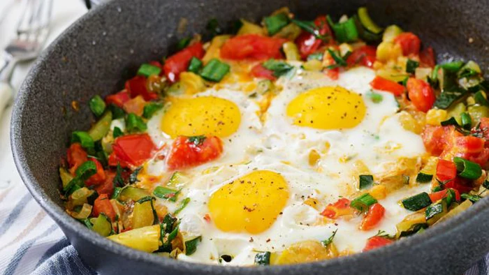 Отличным вариантом станет рецепт овощного завтрака с яйцом и сыром, который готовится всего 10 минут