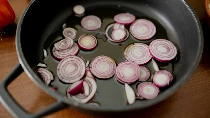Как правильно добавлять ингредиент, чтобы его было достаточно? Для начала нужно нагреть сковороду, влить масло и отправить нарезанный лук. Как только заметите, что овощ начинает менять окрас и становится более прозрачным – самое время добавить соду.