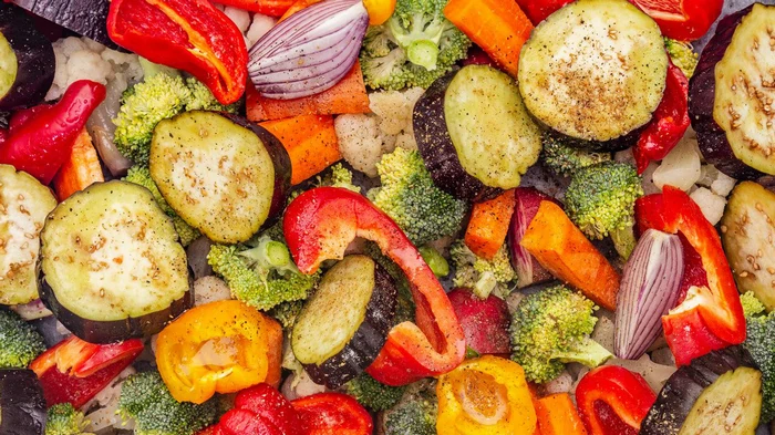 Яркие, ароматные овощи, запеченные в маринаде из бальзамического уксуса, оливкового масла, соевого соуса и чеснока.